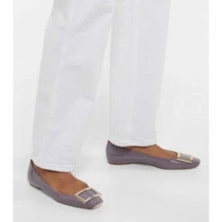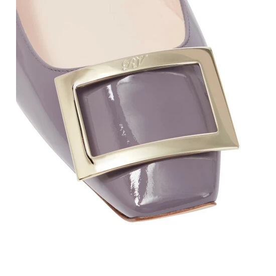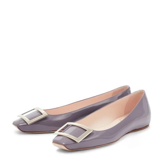 Step into Roger Vivier’s world of luxury with the Trompette ballerinas, featuring a silver buckle on subtly squared toes. The pair is made from purple leather with a glossy varnish finish, and also has a leather sole.