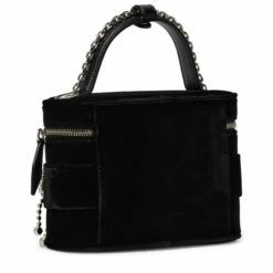 The Vanity Small bag from Roger Vivier is a compact style crafted in Italy from plush velvet and shaped into a rounded silhouette. The black design is embellished with sparkling crystals adorning the signature buckle hanging in fringes from the front.