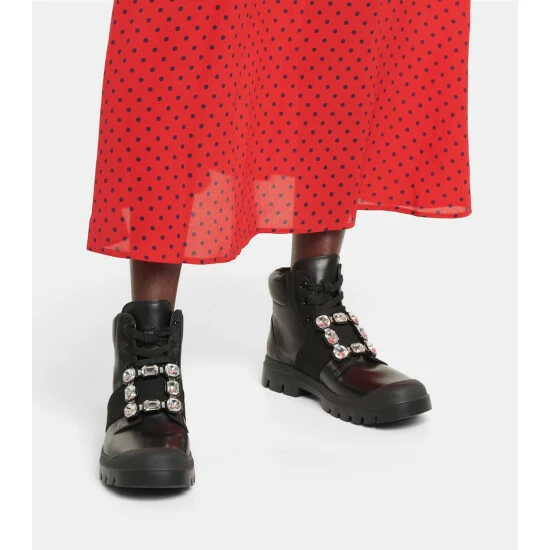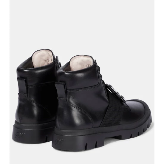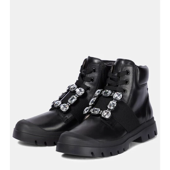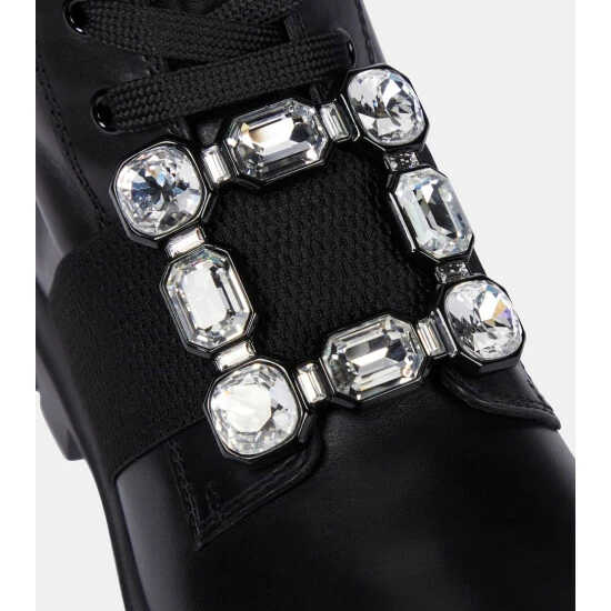 Add some sparkle to your step with the black Viv Desert ankle boots from Roger Vivier, which feature crystal-embellished buckle straps – a label signature. The leather pair are set on ridged rubber soles and finished with classic lace-up fastenings.