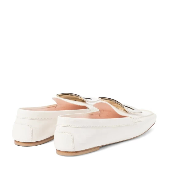 A certified classic from Roger Vivier, the Viv’ Driver loafers feature a number of brand signatures. Made from glossy white leather, it features a square toe and monogram-engraved buckles.