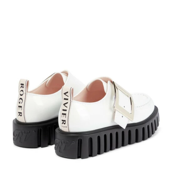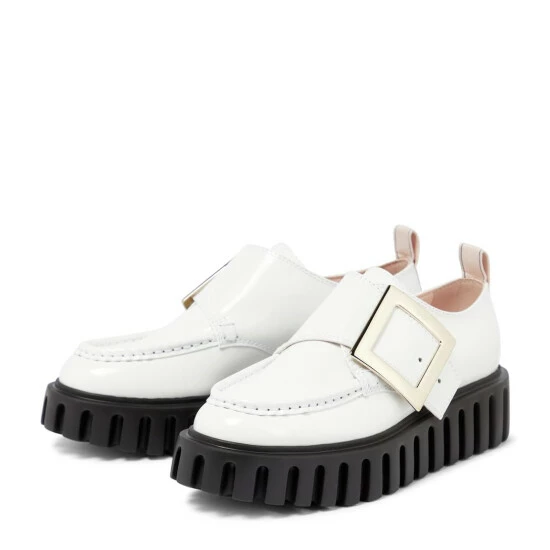 Set on ribbed platform soles, Roger Vivier Viv’ Go-Thick loafers nod to retro punk styles. They’re made from patent leather and adorned with the label’s signature logo-engraved square buckles.