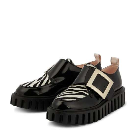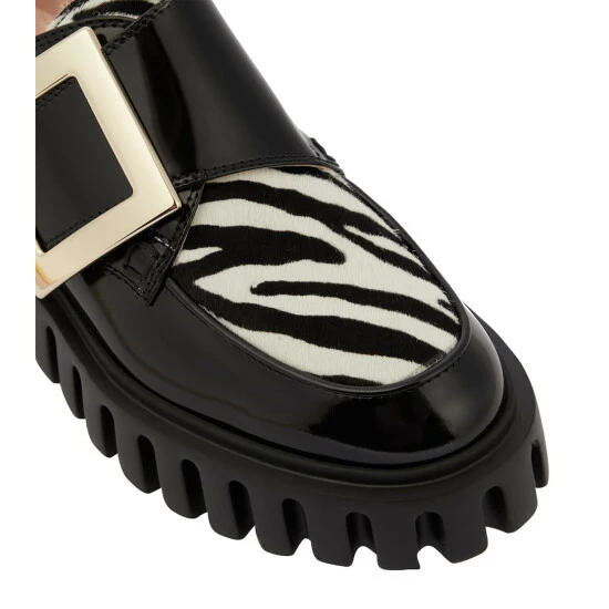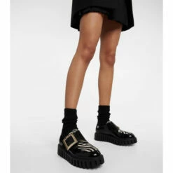 Set on ridged platform soles, Roger Vivier’s Viv’ Go-Thick loafers nod to retro punk styles. They’re made from two-tone patent leather and adorned with the brand’s signature crystal-embellished square buckles.