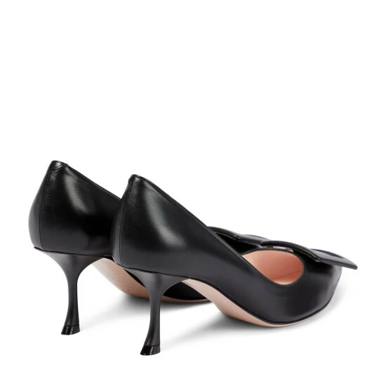 Finish your looks on a polished note with Roger Vivier’s Viv’ In The City pumps. This black leather design is set on 65mm stiletto heels and features pointed toes accented with the house’s hallmark tonal buckles.