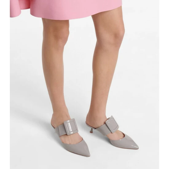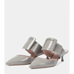 Sophistication comes easily to those who slip on these grey Viv’ In The City mules from Roger Vivier. With tapered 65mm heels, they have pointed toes and the oversized buckles that are so synonymous with the maison.