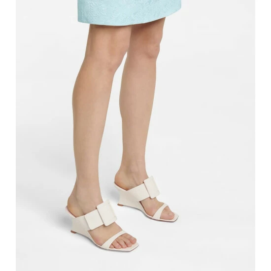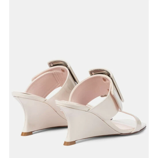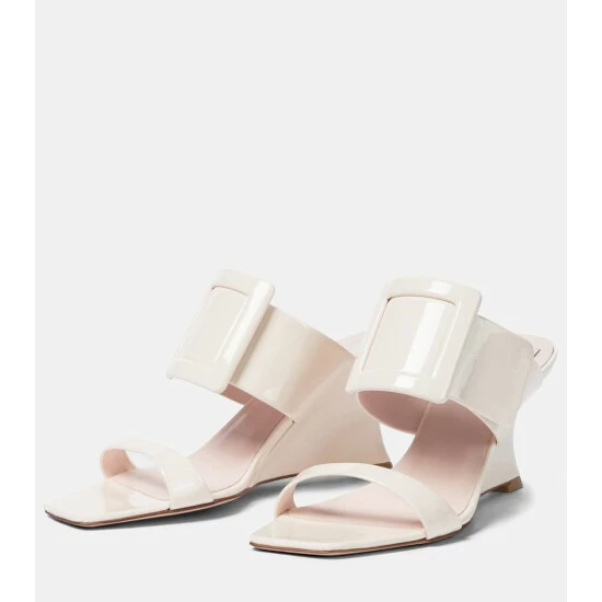 Put the focus on your feet this summer with the white Viv’ In The City sandals from Roger Vivier. Made in Italy from patent leather, they’re embellished with the label’s signature buckles and set on sharp wedge heels with comfortable rubber treads.