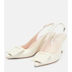 Streamlined, glossy and ultra-modern, the Viv’ In The City wedge pumps from Roger Vivier will quickly become your most beloved item. Made from patent leather with branded buckles, they secure with ankle straps.