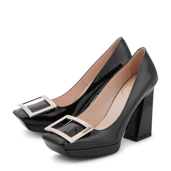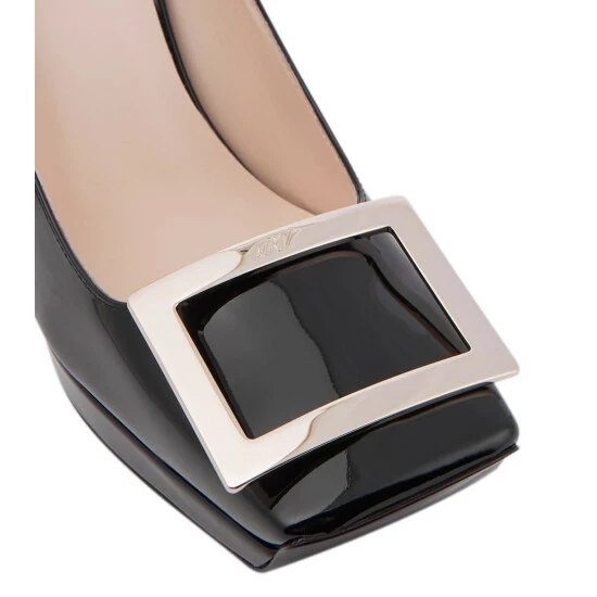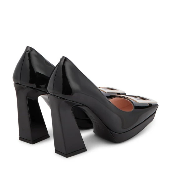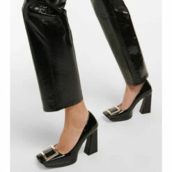 Made from glossy patent leather, these pumps from Roger Vivier have squared toes, platform soles and the label’s signature strass buckle.