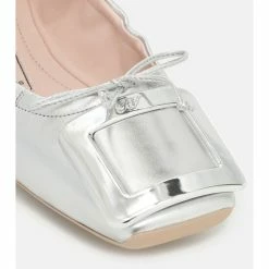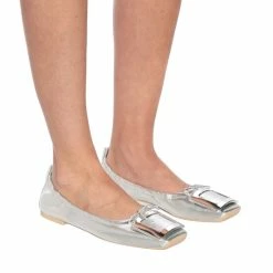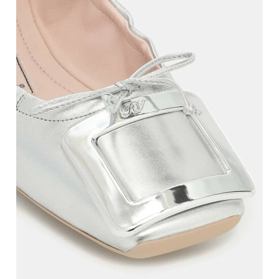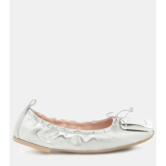A practical style from Roger Vivier, the Viv’ Pockette ballet flats are easy to slip into a shoulder bag for quick shoe changes on-the-go. Handcrafted from silver-toned nappa leather, they come with signature buckles atop the toes as well as comfortable elasticated vamps – allowing them to be folded and placed in a pouch when traveling.