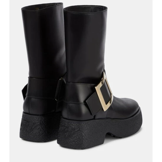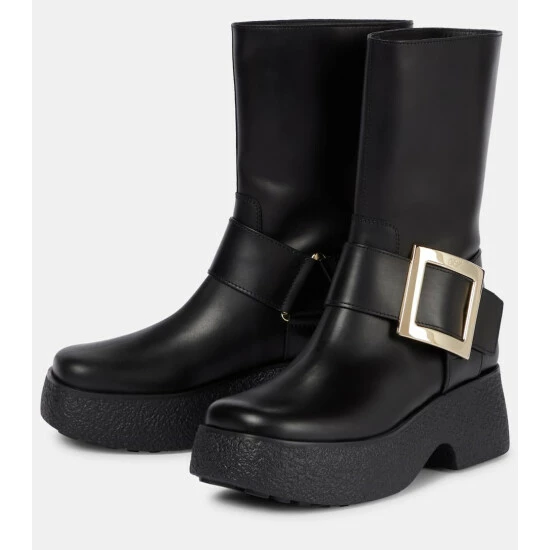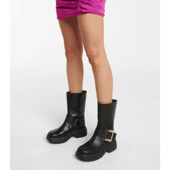 Go for a tough-luxe look this season with the Viv’ Rangers ankle boots from Roger Vivier. Made from smooth black leather in the style of biker boots, they feature an oversized metal buckle and a chunky platform sole.