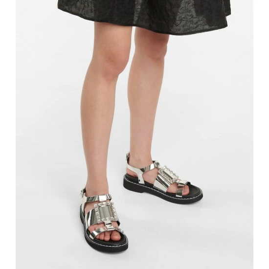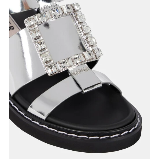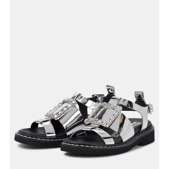 Made entirely from leather, these open-toe Roger Vivier sandals feature reflective silver-tone straps, and are complete with a side buckle fastening and rubber soles. This style is embellished with the label’s signature rhinestone squared buckle at the front.