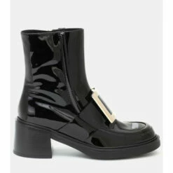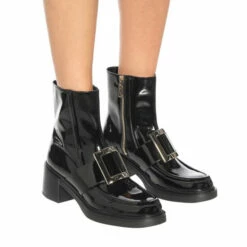 For practical fall footwear that doesn’t compromise on glamour, turn to Roger Vivier’s Viv’ Ranger ankle boots. Made in Italy from black patent leathery, they have apron toes with the label’s signature square buckles. The inner-side zipper makes them easy to slip on, while the block heel promises a comfortable stride.