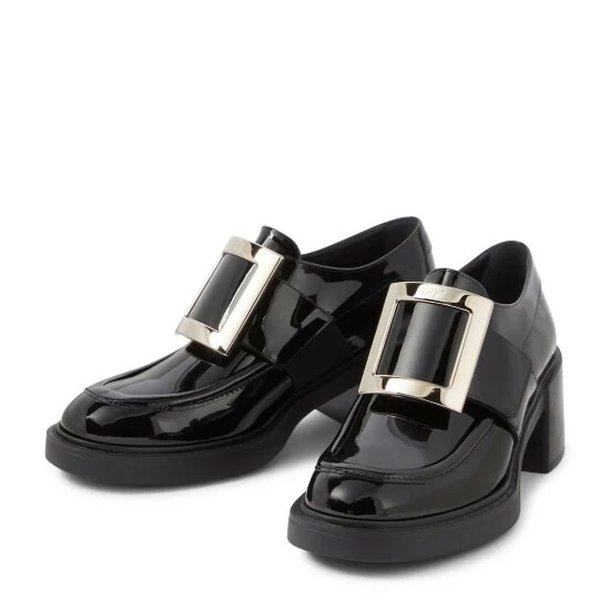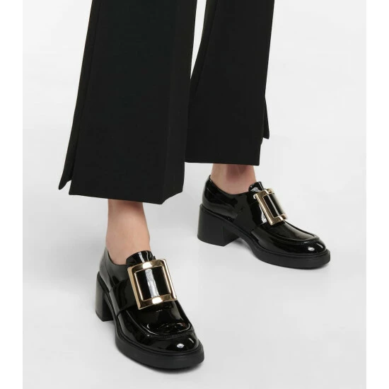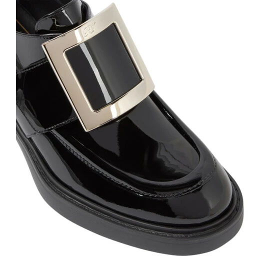 Finding the sublime in androgyny, Roger Vivier presents these black Viv’ Rangers loafers, set upon a 60mm block heel. Made in Italy from patent calf leather, they’re adorned with the house-signature golden buckle. Show yours off with cropped tailoring.