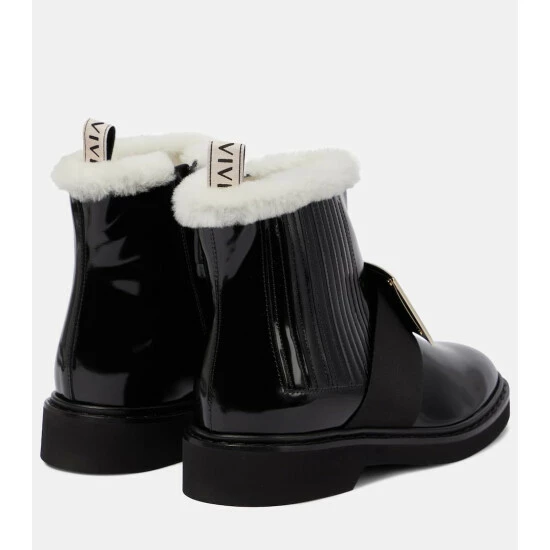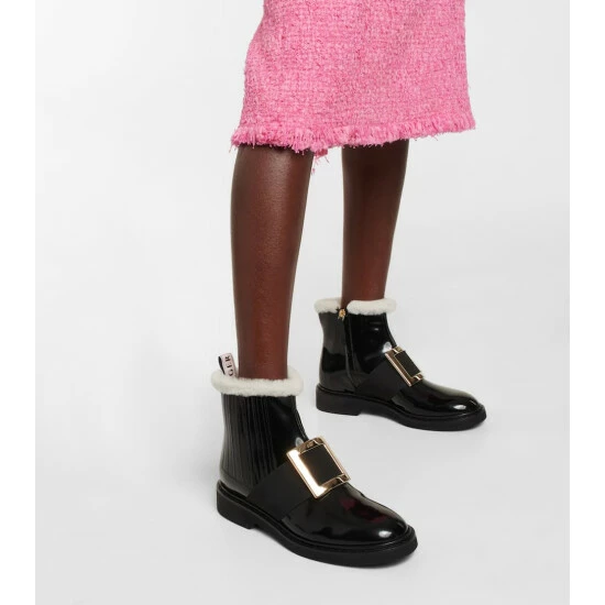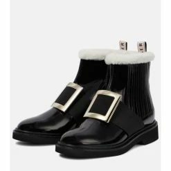 Roger Vivier’s Viv’ Rangers ankle boots prove footwear can be both glamorous and practical. They’re made from patent leather with tactile shearling linings, and signature engraved buckles.