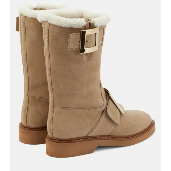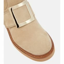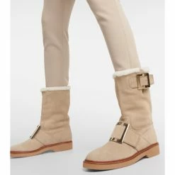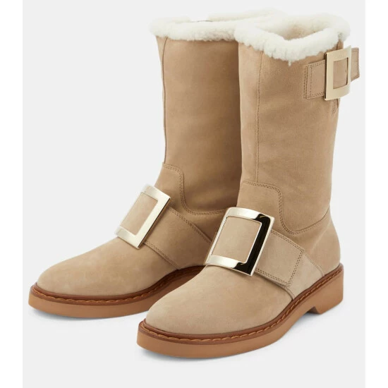Roger Vivier’s Viv’ Rangers ankle boots prove footwear can be both glamorous and practical. They’re made from beige suede with tactile shearling lining, and signature engraved buckles.