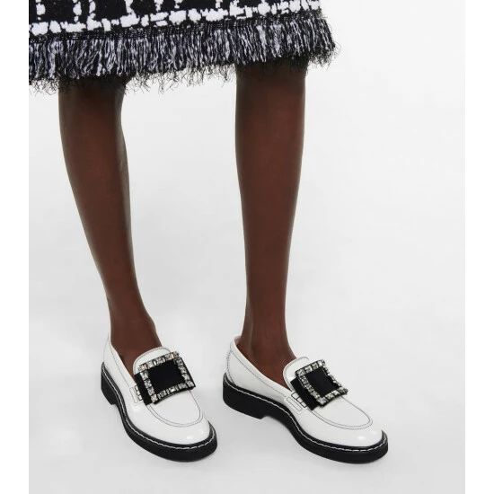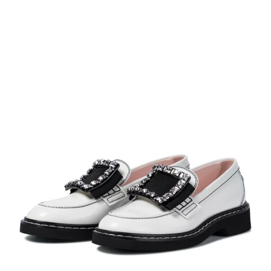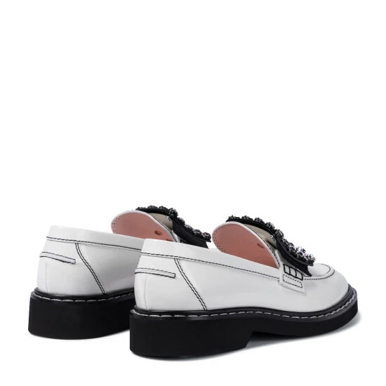 Your desk-to-dinner rotations will gain new momentum when you can slip into the Viv’ Rangers Strass Stitch loafers from Roger Vivier. Made from supple white calfskin leather, they’re adorned with crystal-studded iconic buckles at the contrasting tongues. Set atop comfortable rubber soles with a slight platform, they’ll enliven the daily 9-5 routine with ease.