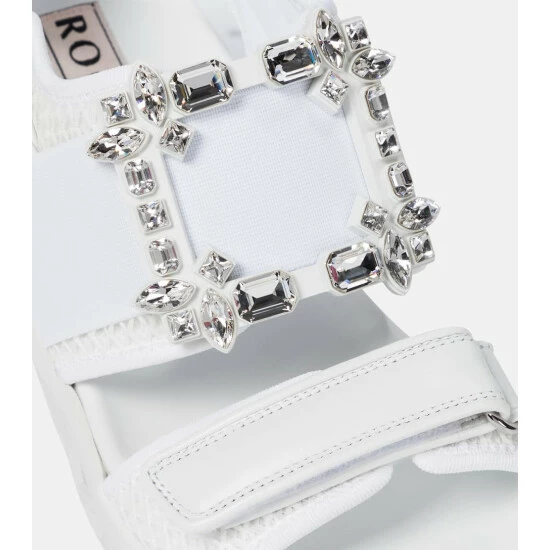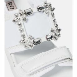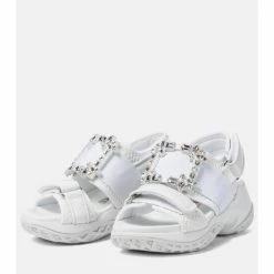Roger Vivier offers an irreverent take on a classic summer style with its Viv’ Run sandals. The chunky silhouette is made from mixed mediums, including smooth leather straps, technical mesh trims and the label’s iconic crystal-embellished buckles. The white colorway makes the sporty pair chic enough for casual office ensembles.