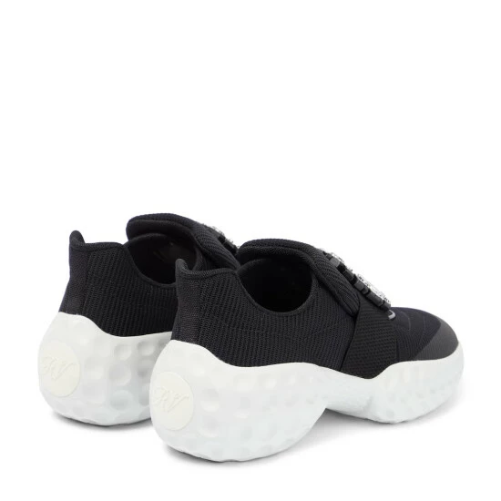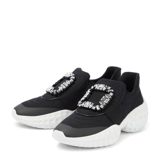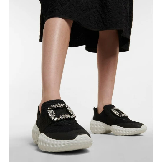 The Viv’ Run sneakers from Roger Vivier have mesh uppers and cushioned rubber soles. They’re topped with brand-signature crystal-embellished buckles.