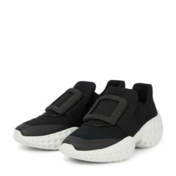 Roger Vivier caters to those on-the-go with the Viv’ Run Light sneakers. They’re made from sock-like technical uppers, and have covered buckles for an athletic take on the label’s signature feature.