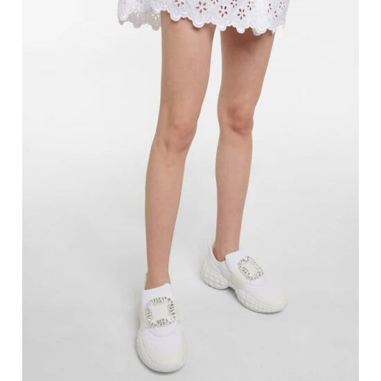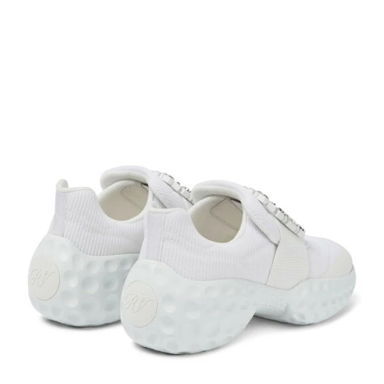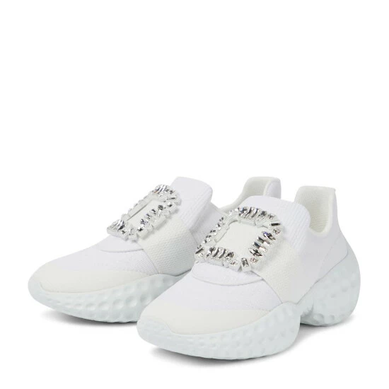 For a glamorous take on athleisure, look to Roger Vivier’s Viv’ Run Moonlight sneakers. They’re made from sock-like technical uppers with thick rubber soles, and have grosgrain-backed embellished buckles.