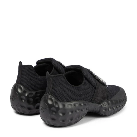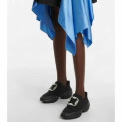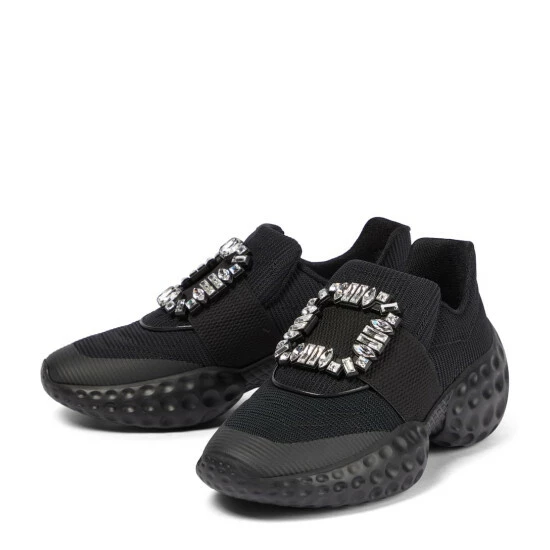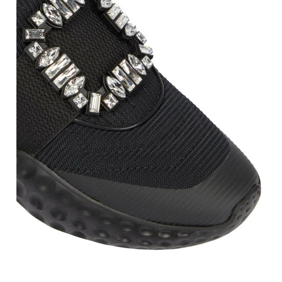 For a glamorous take on athleisure, look to Roger Vivier’s Viv’ Run Moonlight sneakers. They’re made from black, sock-like technical uppers with thick rubber soles, and have grosgrain-backed embellished buckles.