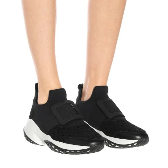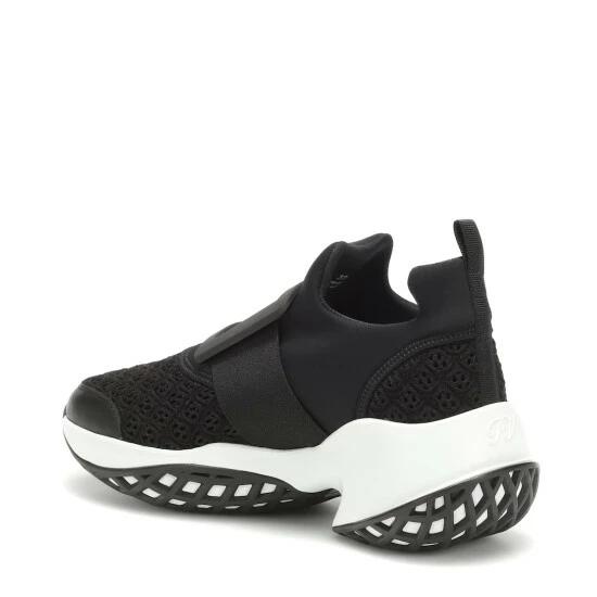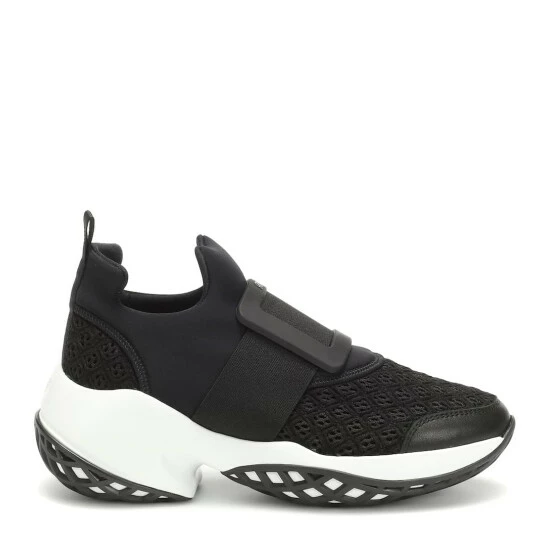 The Viv’ Run sneakers from Roger Vivier are a feminine athletic shoe inspired by the label’s heritage designs, from the iconic buckle of the Belle Vivier to the chunky Choc heel. Made in Italy, the design has a thick rubber sole and black technical fabric upper that is punctuated by crosshatching mesh at the toes and heel. The Viv’ Run sneakers are perfect for running between appointments without compromising on style.