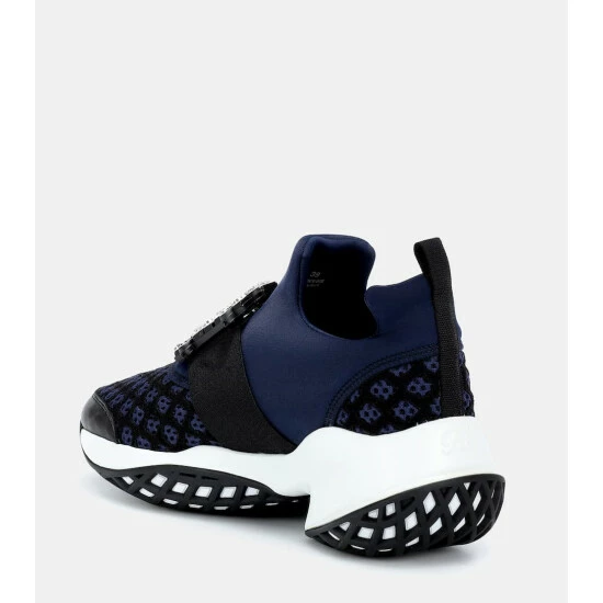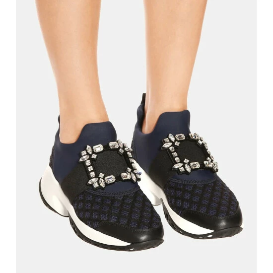 The Viv’ Run sneakers from Roger Vivier are a feminine athletic shoe inspired by the label’s heritage designs, from the iconic crystal-embellished Strass Buckle of the Belle Vivier to the chunky Choc heel. Made in Italy, the design has a thick rubber sole and navy blue technical fabric upper that is punctuated by crosshatching black mesh at the toes and heel. They’re perfect for running between appointments, without compromising on style.