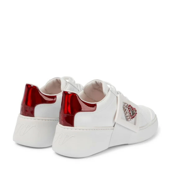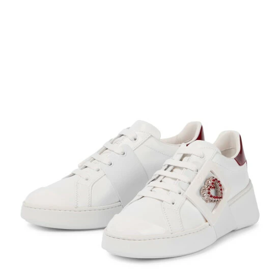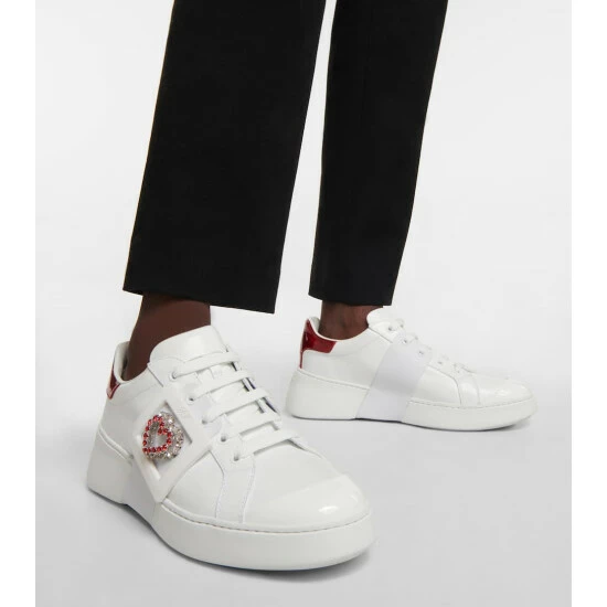 The Viv’ Skate Love sneakers from Roger Vivier will elevate your streetwear looks. Made from calfskin with patent leather toe caps, they feature signature buckles with crystal-encrusted hearts nestling on the inside.