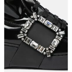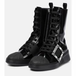 Roger Vivier gives the classic combat boot a glamorous update with the black Viv’ Skate design. Made from glossy patent leather, this pair features practical details such as flat rubber soles, rear pull tabs and side-zip fastenings. The label’s signature crystal buckles end the design on an opulent note.