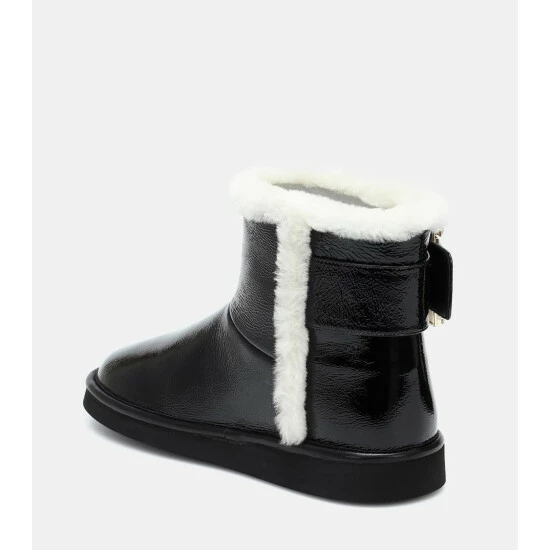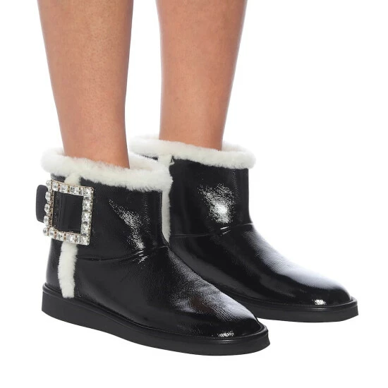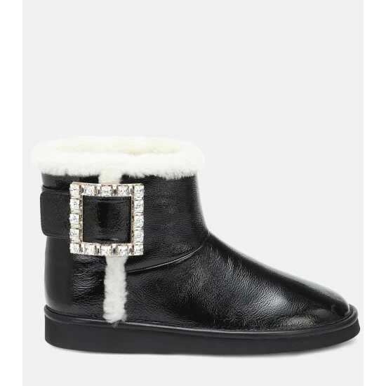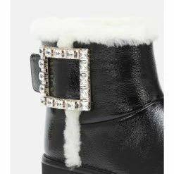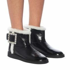 Adorned with a house-signature crystal buckle, these black Viv Snow Strass ankle boots from Roger Vivier look as good on the slopes as on city streets. Made from supple lamb leather, they’re lined and trimmed with ultra-soft shearling. Let yours add glamour to oversized knits and puffer coats.