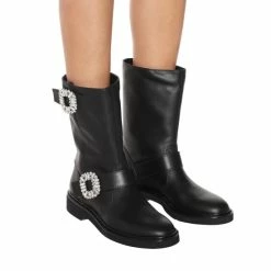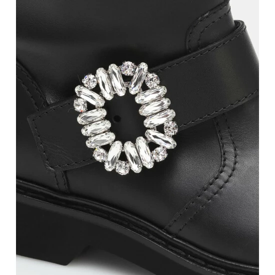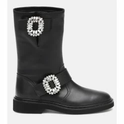 These black Viv’ ankle boots from Roger Vivier are a feminine take on classic biker styles. Made from calfskin leather that will wear to your liking over time, they have wide harness straps embellished with the label’s signature Strass buckles. Ensure they stay on full display this winter with knee-length coats and slim fit pants.