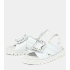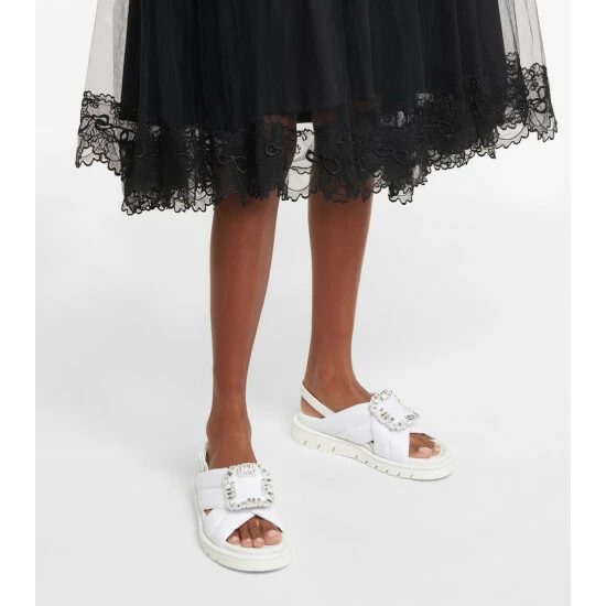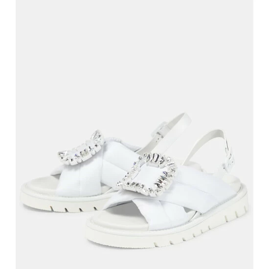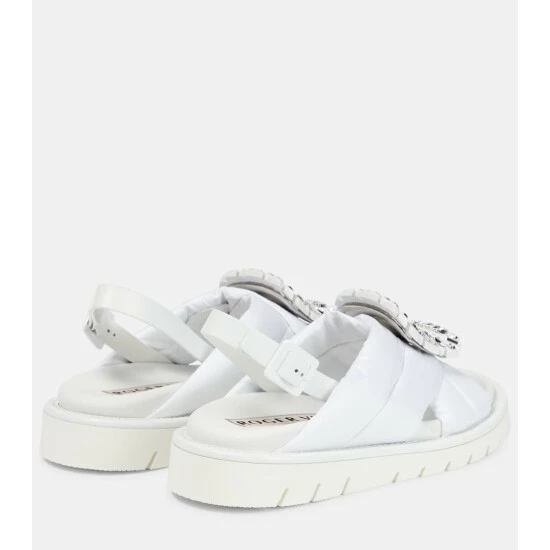 The Viv’ Winter sandals from Roger Vivier are ideal for summer strolls in the city. They are made in Italy from quilted and padded nylon and embellished with signature crystal buckles.