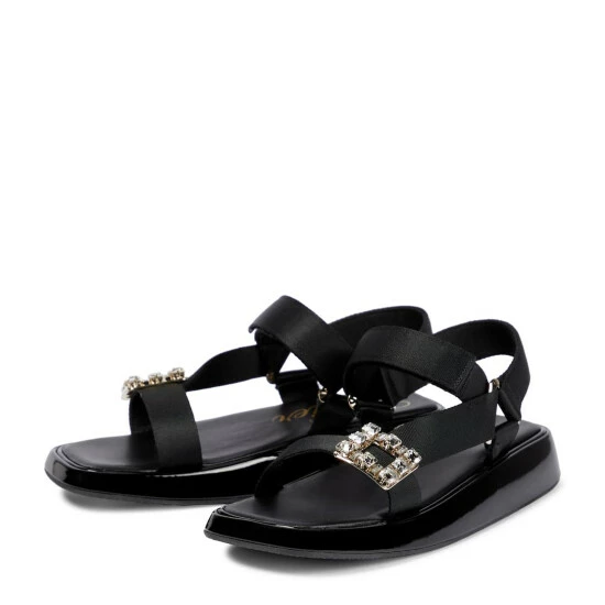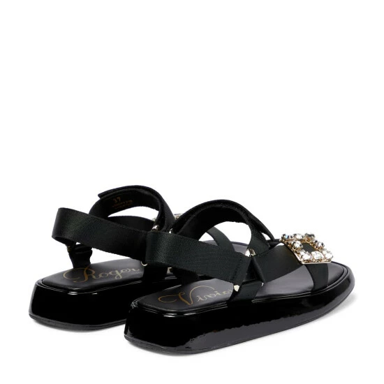 The Vivier Slide Trekky sandals from Roger Vivier are designed with warm-weather destinations in mind. Grosgrain VELCRO® straps provide a supportive fit, while the patent leather platform soles feel comfortable underfoot. The crystal buckles are also a brand signature.