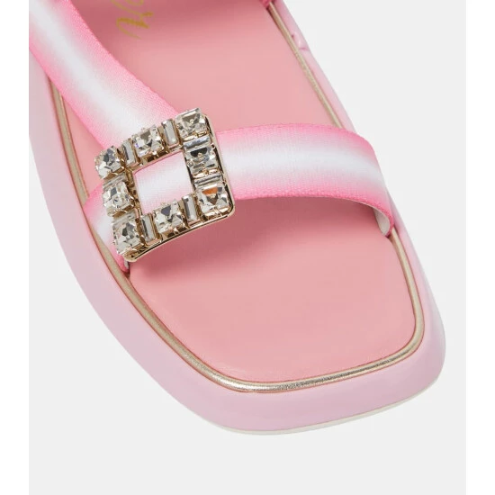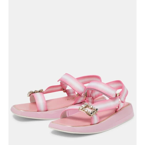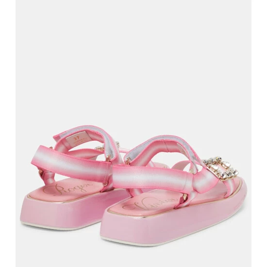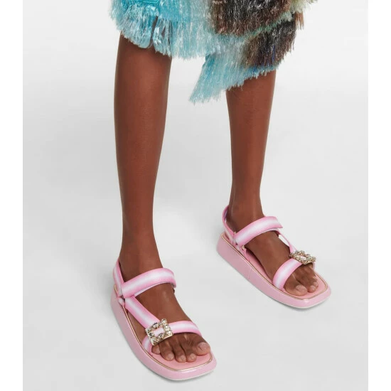 Roger Vivier’s Vivier Slide Trekky sandals are designed with warm-weather destinations in mind. Grosgrain VELCRO® straps with signature crystal-embellished buckles provide a supportive fit, while the patent leather platform soles feel comfortable underfoot.