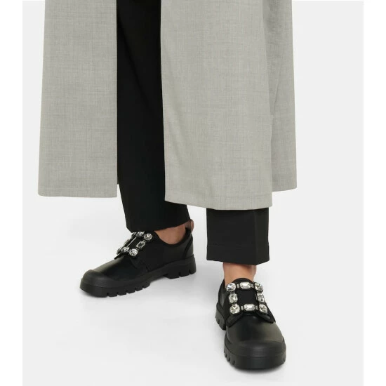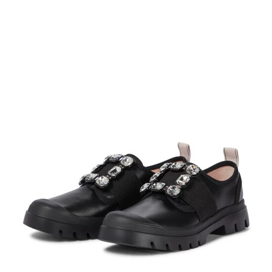 The black leather Walky Viv’ sneakers from Roger Vivier feature the label’s signature buckle straps, and are set on ridged rubber soles and finished with classic lace-up fastenings.