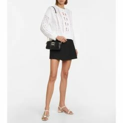 Roger Vivier’s Walky Viv’ Small camera bag will make a decadent daytime companion. The compact design is crafted from finely grained black calfskin with crystal embellishments and two shoulder straps.